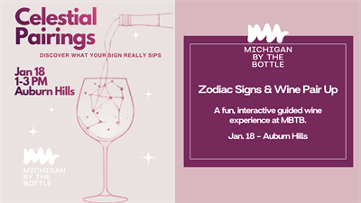 This guided wine experience includes a tasting of six Michigan wines, with each wine paired to two zodiac signs based on shared characteristics and vibe. From bold and fiery to smooth and romantic, you’ll learn why certain wines just feel right for your sign.